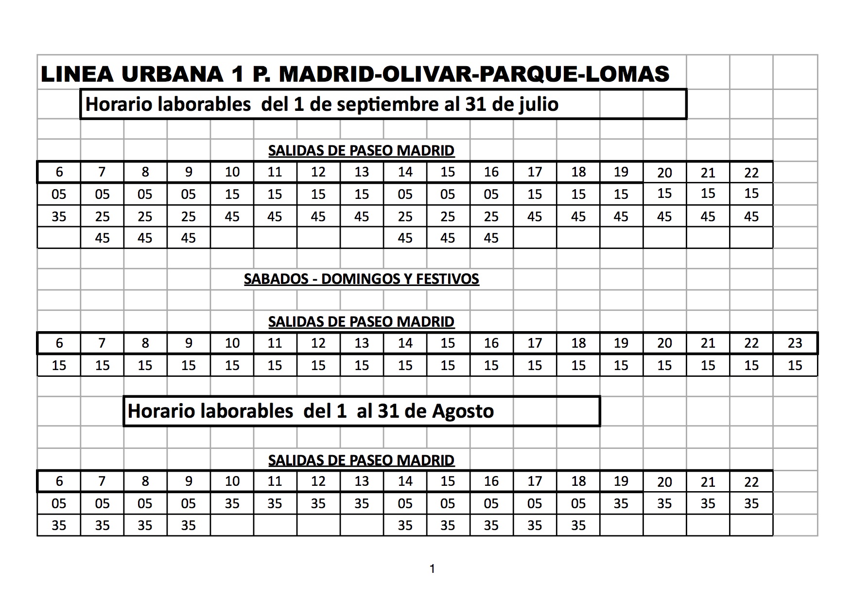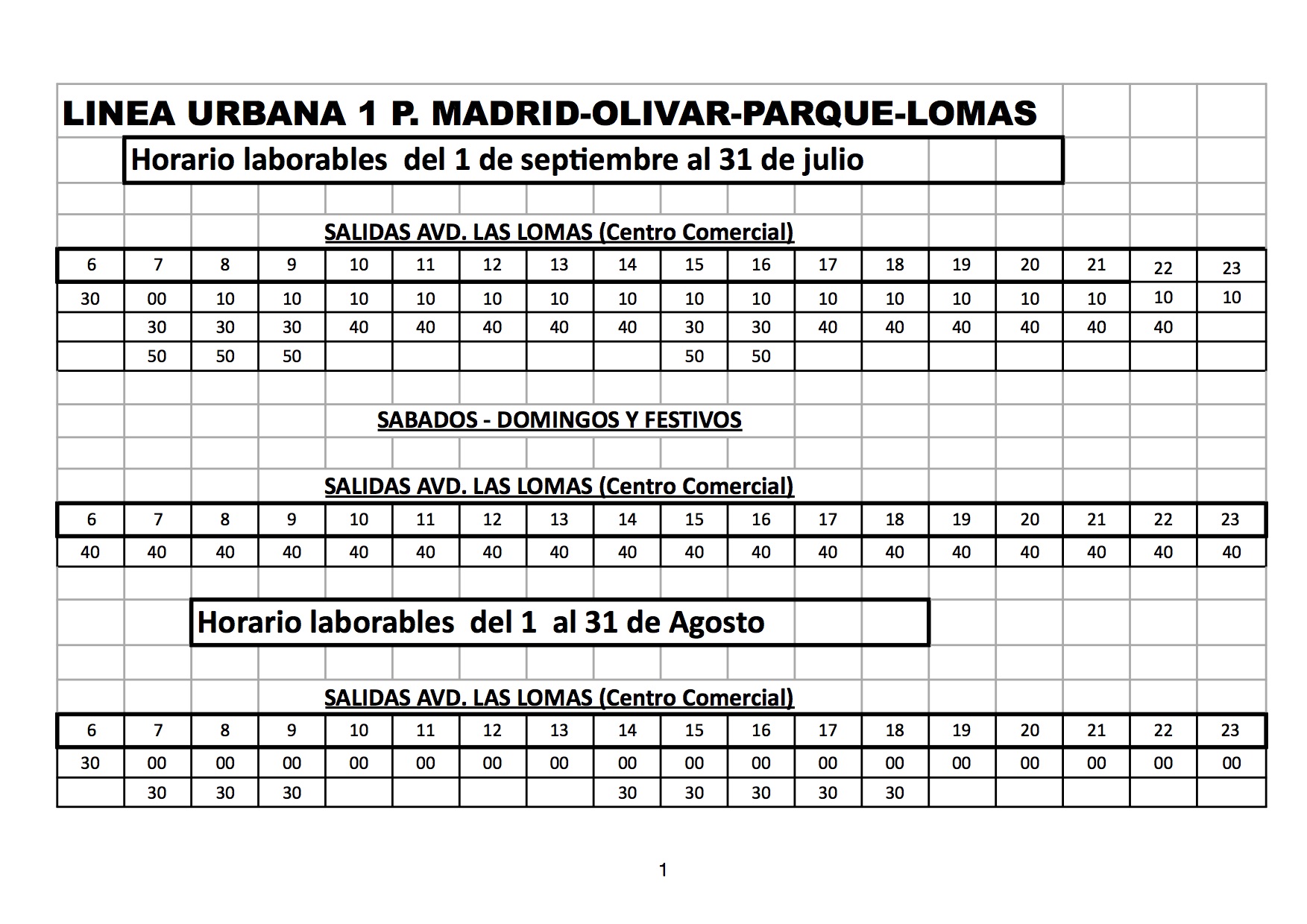 DÍAS 24 Y 31 DE DICIEMBRE ÚLTIMAS SALIDAS - PASEO MADRID 20:45 -LOMAS 20:40 DÍAS 25 DEL 12 Y 01 DE ENERO PRIMERAS SALIDAS-PASEO MADRID 09:15 -LOMAS 09:40