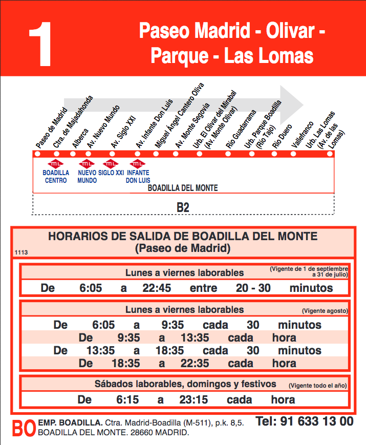 | 12185 | Av.Siglo Xx-Est.Siglo Xxi | Boadilla Del Monte | b2 | Ver en el mapa |